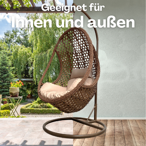 Der Hängesessel hat ein schönes und exklusives Rattan-Design. Dieser Stil sorgt dafür, dass es nicht nur Sie, sondern auch alle Ihre Gäste anspricht. Zudem ist der Hängesessel durch sein rundes Stahlgestell sehr robust und sehr stabil. Es kann ein Gewicht von 120 kg tragen.