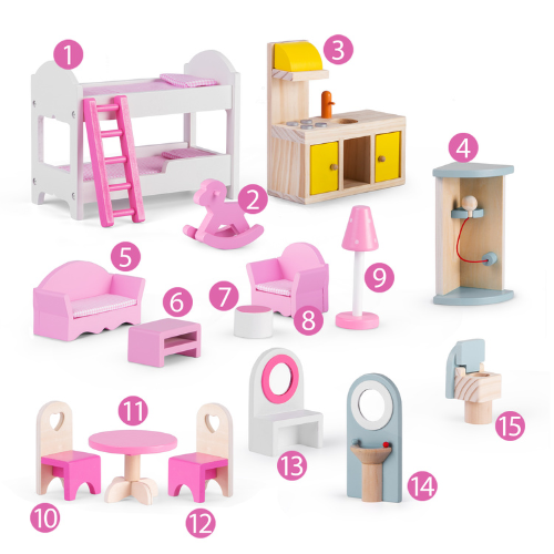 - Enthält 15-teiliges Miniatur-Möbelset!