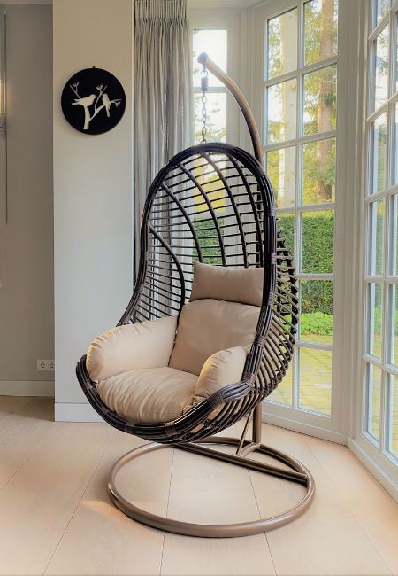 Der Hängesessel hat ein schönes und exklusives Rattan-Design. Dieser Stil sorgt dafür, dass es nicht nur Sie, sondern auch alle Ihre Gäste anspricht. Zudem ist der Hängesessel durch sein rundes Stahlgestell sehr robust und sehr stabil. Es kann ein Gewicht von 120 kg tragen.